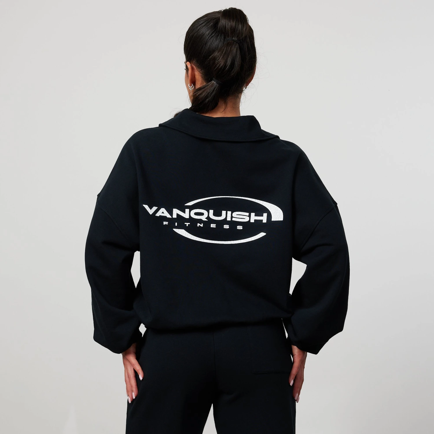 This sweater comes in an oversized fit on the body and sleeves, with relaxed shoulders and ribbed cuffs and hem for a boxy fit. Featuring a collar neckline & double distressed vanquish branding on front & back.