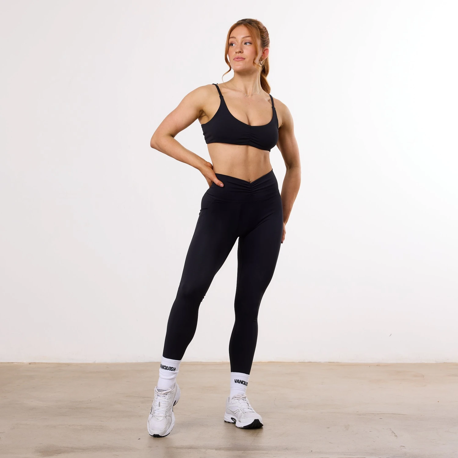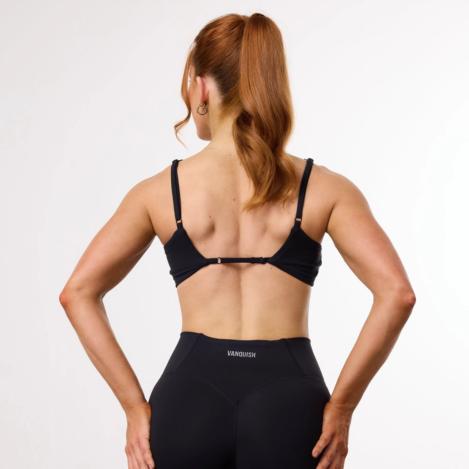 The new Enhance Minimal Open Back Bra, features a double-layer design with removable cups and ruched stitch detail at the center front. With comfortable adjustable straps, this bra can be worn over the shoulder or as a racer back for additional support. Wear for light training or lifting.