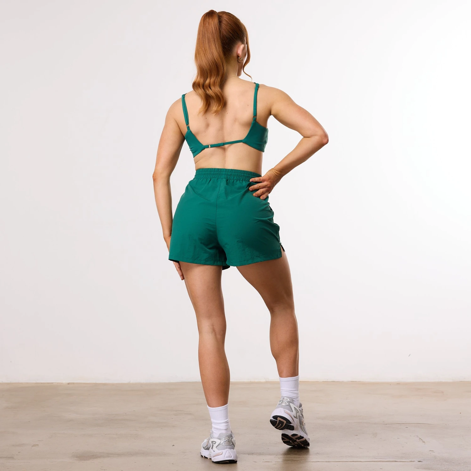 The new Enhance Minimal Open Back Bra, features a double-layer design with removable cups and ruched stitch detail at the center front. With comfortable adjustable straps, this bra can be worn over the shoulder or as a racer back for additional support. Wear for light training or lifting.