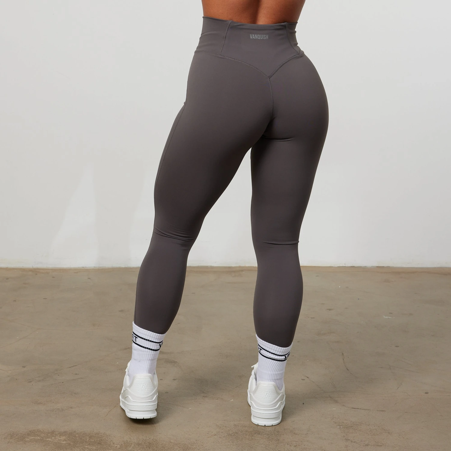 These leggings, made in our softest cut & sew fabric yet feature a crossover ruched waist band, flattering panel detail at the back and Vanquish branding on the back waist.