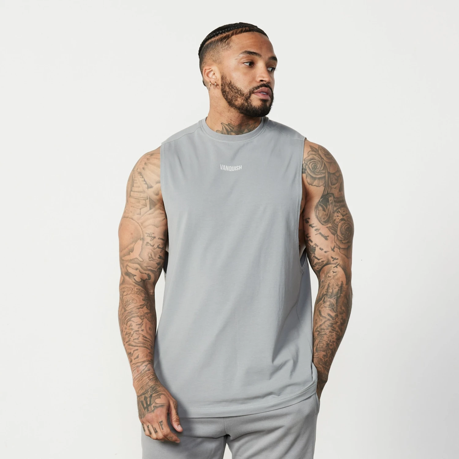 Vanquish Essential Steel Grey Oversized Sleeveless T Shirt