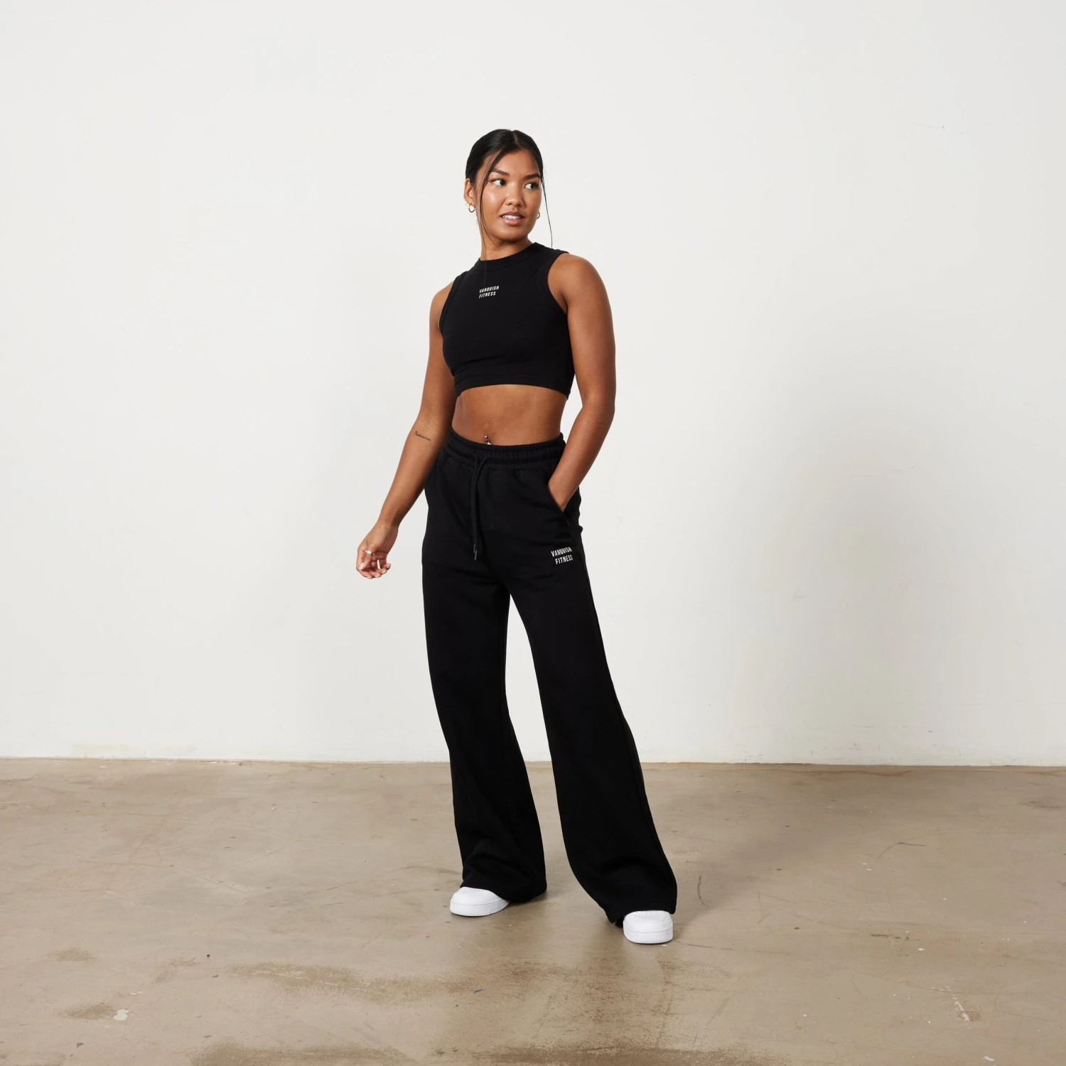 These sweatpants come in a wide leg fit, with an elasticated draw cord waistband and side and back pockets. Made in an ultra soft cotton blend, brushed fleece fabric, the front features a minimal style of printed branding on the left leg.